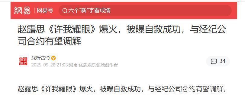 网易新闻:赵露想《许我审视》爆火,被曝自救胜利,与经纪公司合约有望和洽