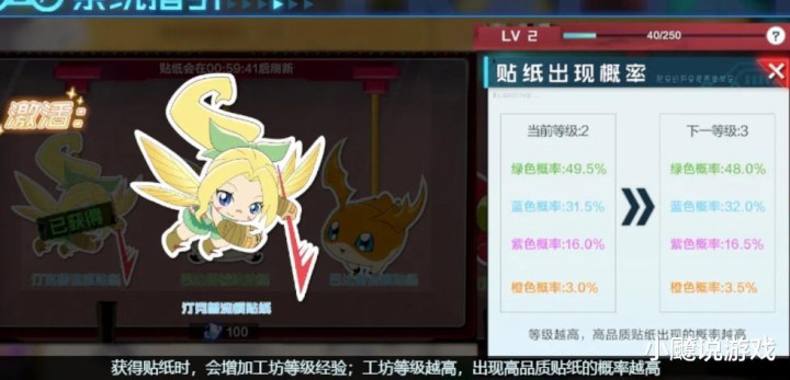 贴纸工坊每轮会刷新 3 个贴纸,1 小时后会自动刷新下一轮,若是集皆现时轮的 3 个贴纸,还能坐窝开启新一轮,同期晋升工坊品级,品级越高,刷出高品性贴纸的概率就越大。不外有个小细节需要留心,贴纸手段的开释会占用数码兽现时的行动回合,比如输出数码兽底本能放奥义打爆发,用了贴纸手段就只可等下回合再开释,是以实战中得选对时机,弗成盲目使用。