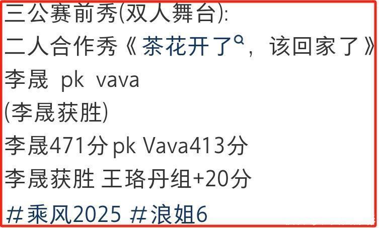 更何况,李晟在一公播出后火爆出圈,最终在赛前秀中赢了vava,为团队加分20,吃到了爆火的红利,现场不雅众中她的兵应该不少。