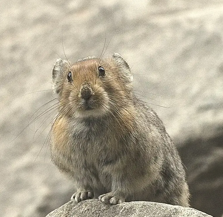 贺兰山鼠兔在同类里算是大块头了,毛色还会跟着季节变化,每年的4月中旬,它全身的毛色就会造成亮锈红色,到了9月上中旬,又造成了淡铁灰色。