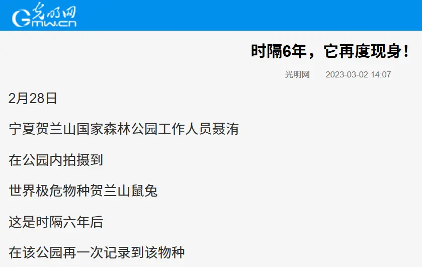 如若咱们当今再不取舍行径,也许用不了多久,贺兰山鼠兔就会恒久褪色在贺兰山。